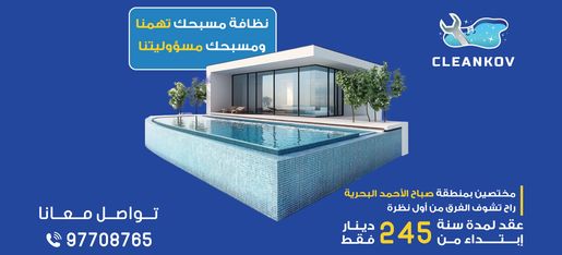 شركة تنظيف مسابح بالكويت مختصة بالتنظيف والصيانة نهدف الى اختصار الوقت وراحة عملائنا وتوفير خدمة على اعلى مستوى في منطقة صباح الاحمد البحرية وتغطية اكبر عدد من الشاليهات، كما اننا متخصصين في تجهيز الشاليهات تجهيز فندقي مع فريق عمل مختص